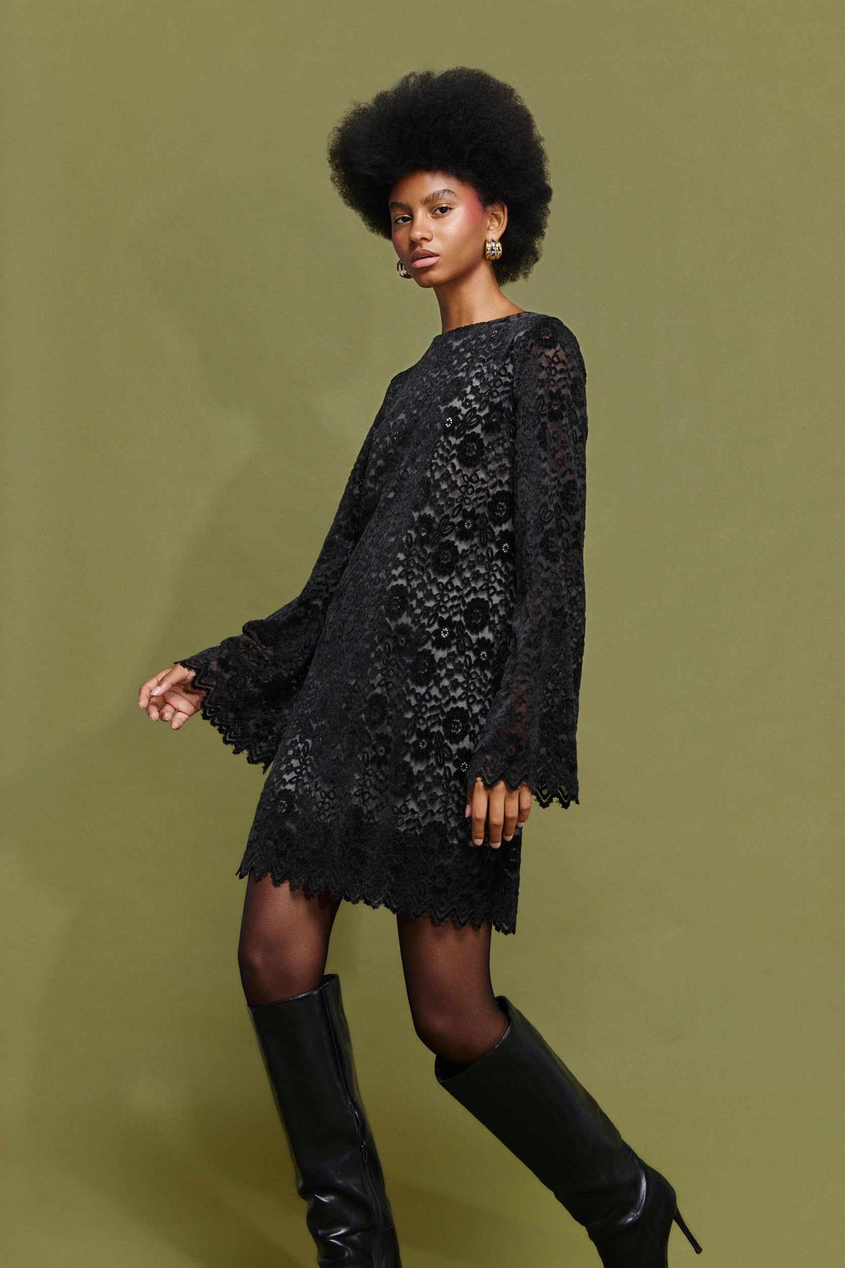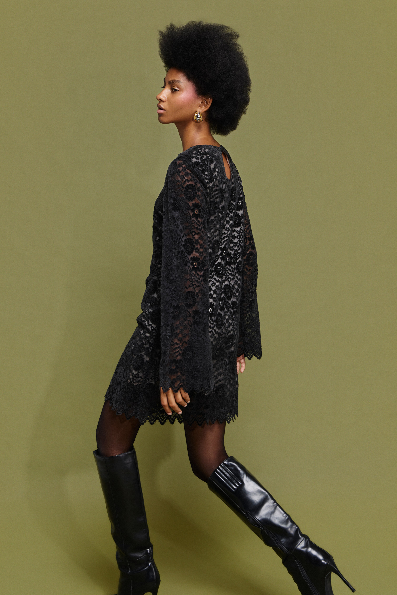 - Μίνι φόρεμα από δαντέλα με βελούδο