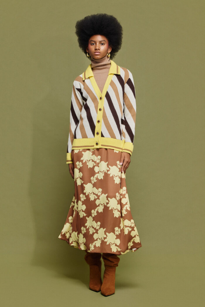 ‘ATHENA’ STRIPED KNITTED CARDIGAN (YELLOW/CHOCOLA)