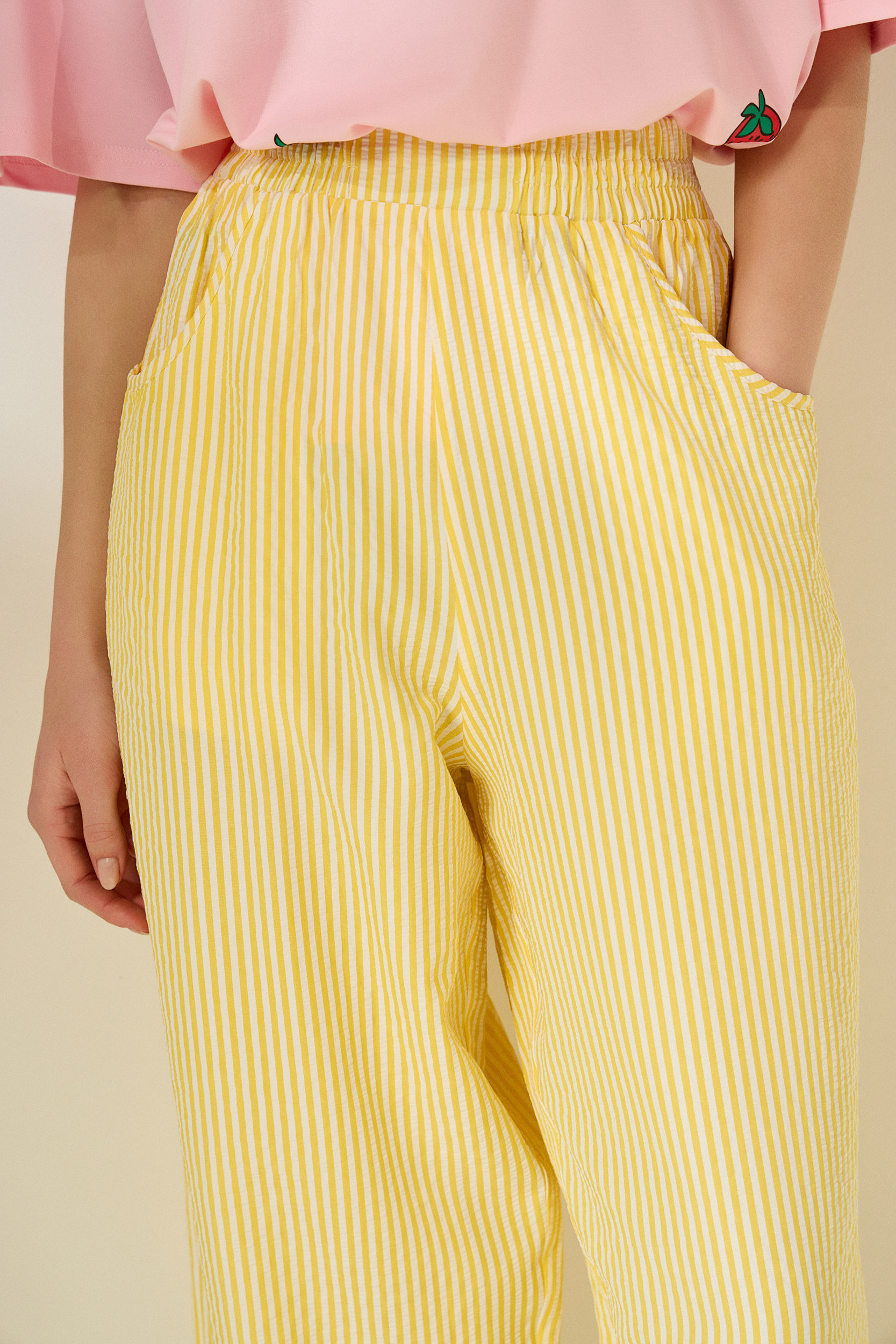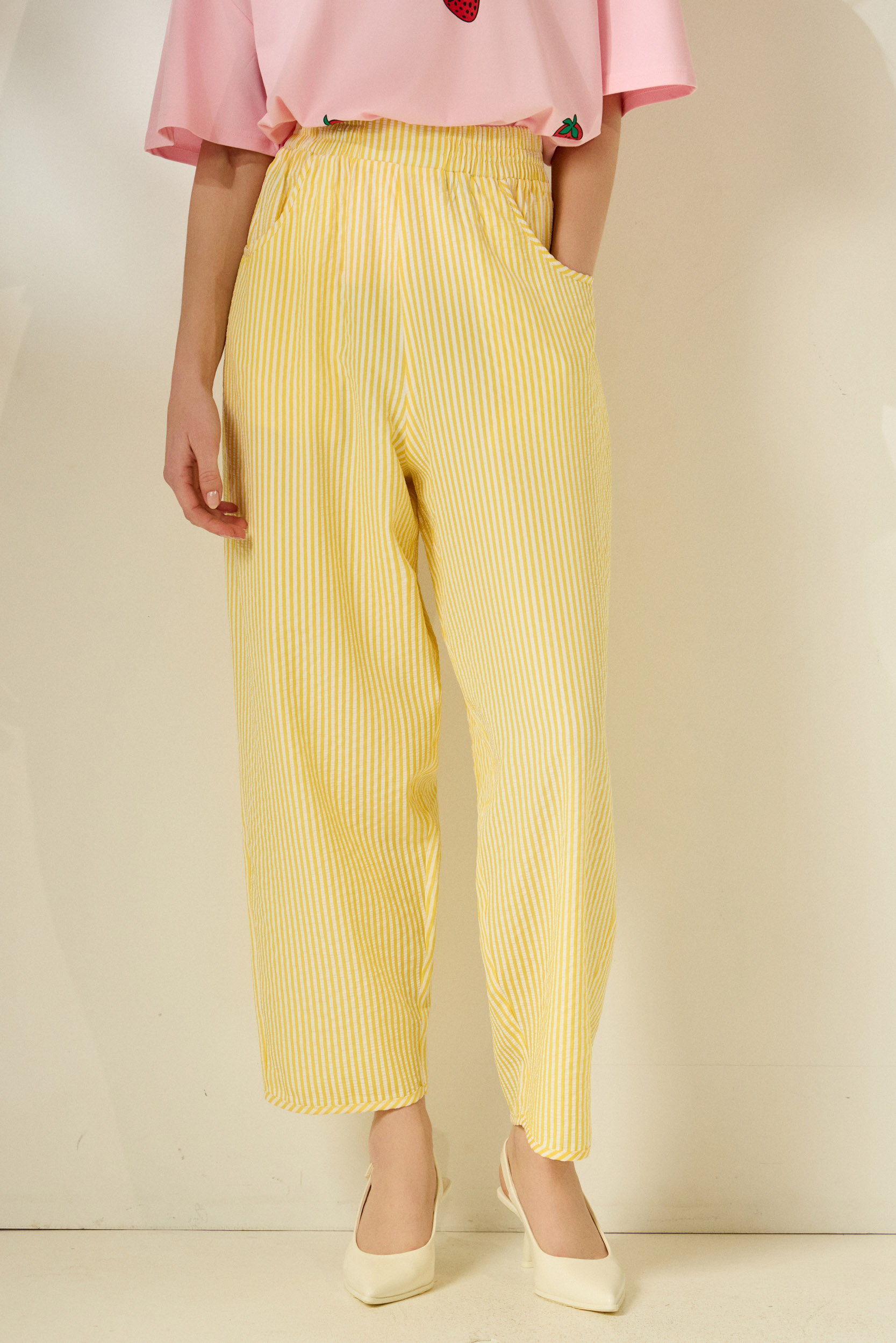 ‘CAPRI’ STRIPED CROPPED TROUSERS (YELLOW)