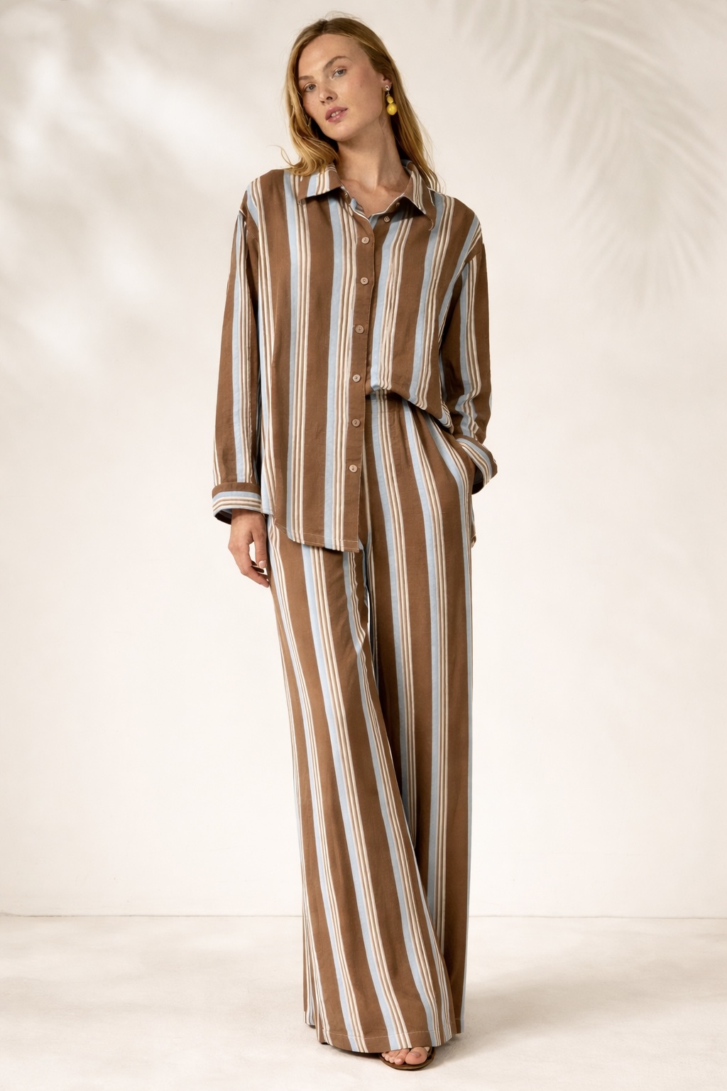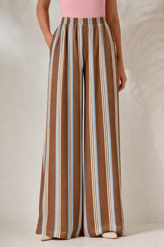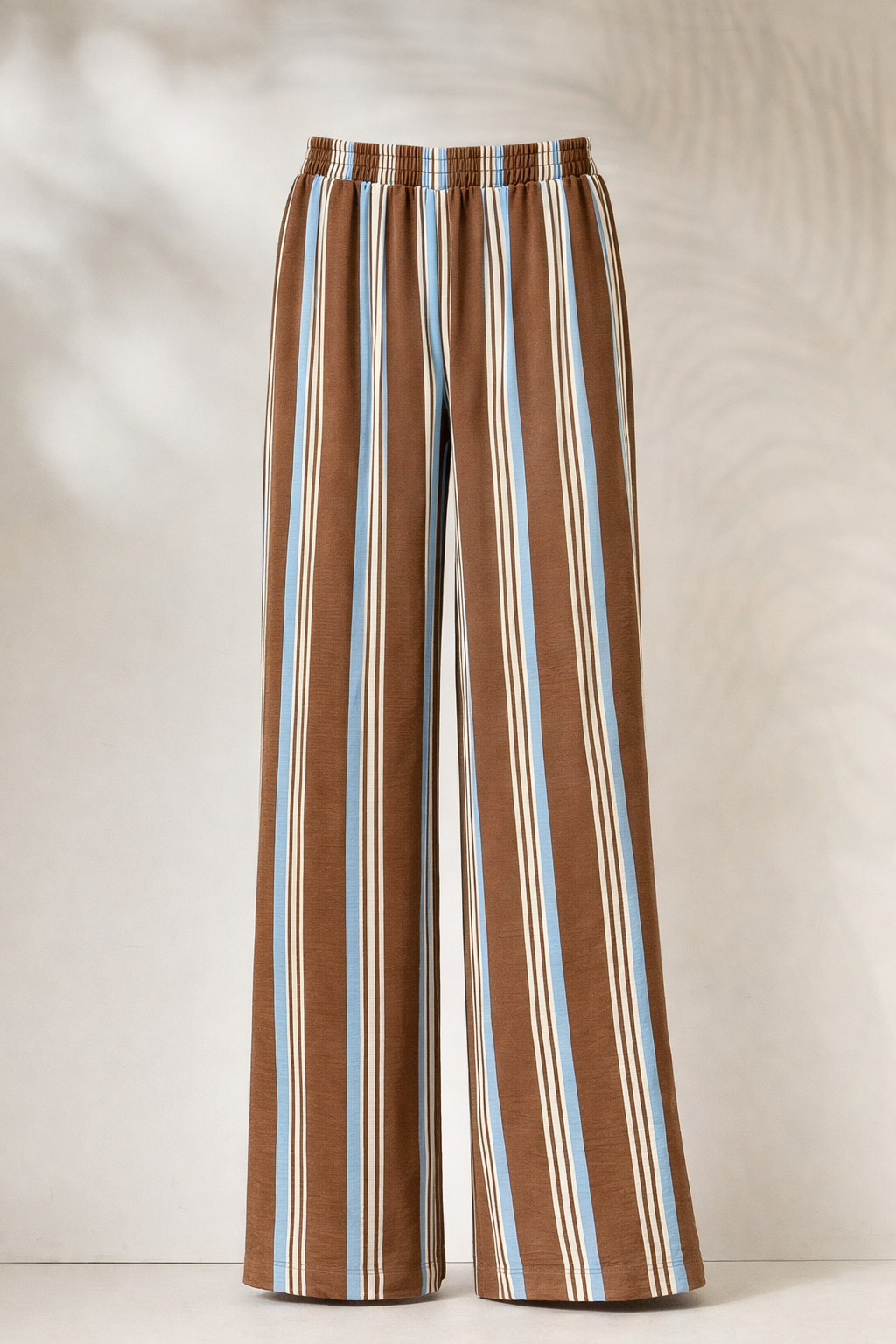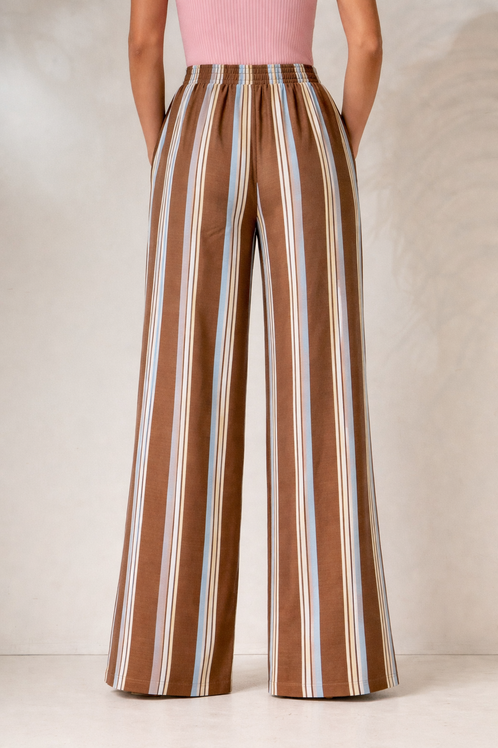 ‘DOMNA’ STRIPED TROUSERS WITH ELASTIC (CHOCOLATE/CIEL)